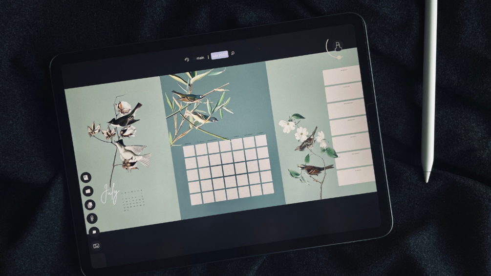 The calendar page for July 2023 is clean and minimalistic, and can be used with other Defter Notes elements to jot down your appointments, meetings, and important dates. In addition to the calendar page, you'll receive 4 simple pages for your handwritten iPad notes, as well as a weekly and a monthly page to keep you on track.